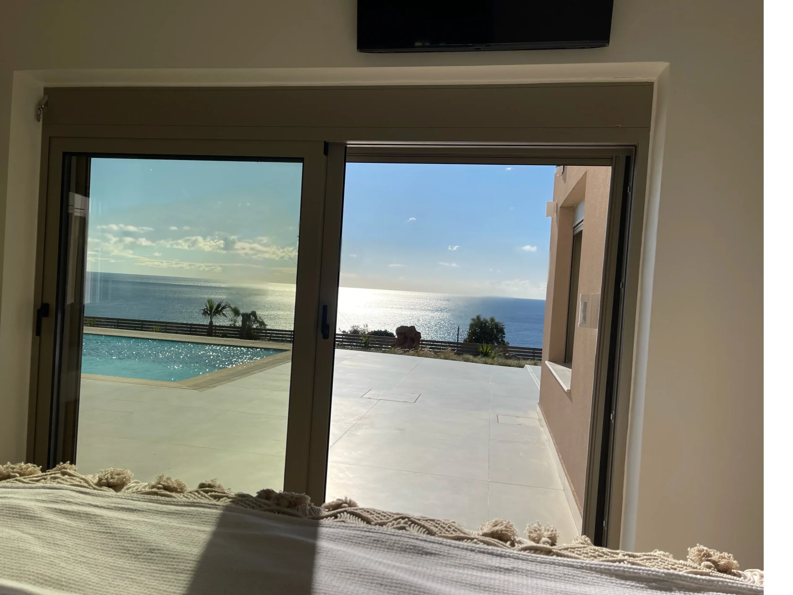 - Bedrooms: Three luxurious en suite bedrooms, each offering tranquil views and direct access to outdoor spaces. Lots of storage space, a safe in each room, and all offer a desk or an additional sleeping or sitting nook. A large TV with smart applications like Netflix, Disney+, and news channels in different languages are also available in each room. AC and a ceiling fan is also available in each room.